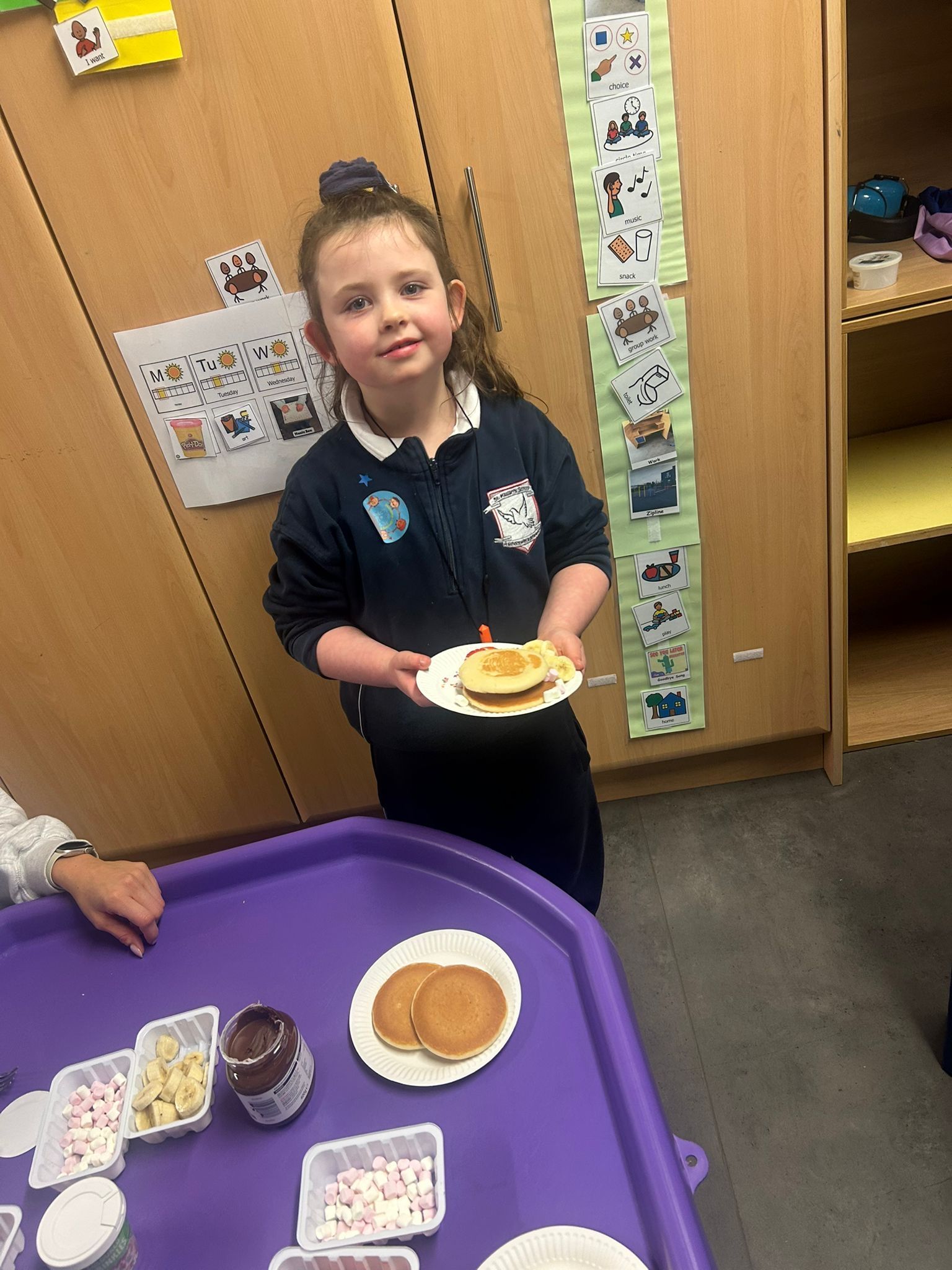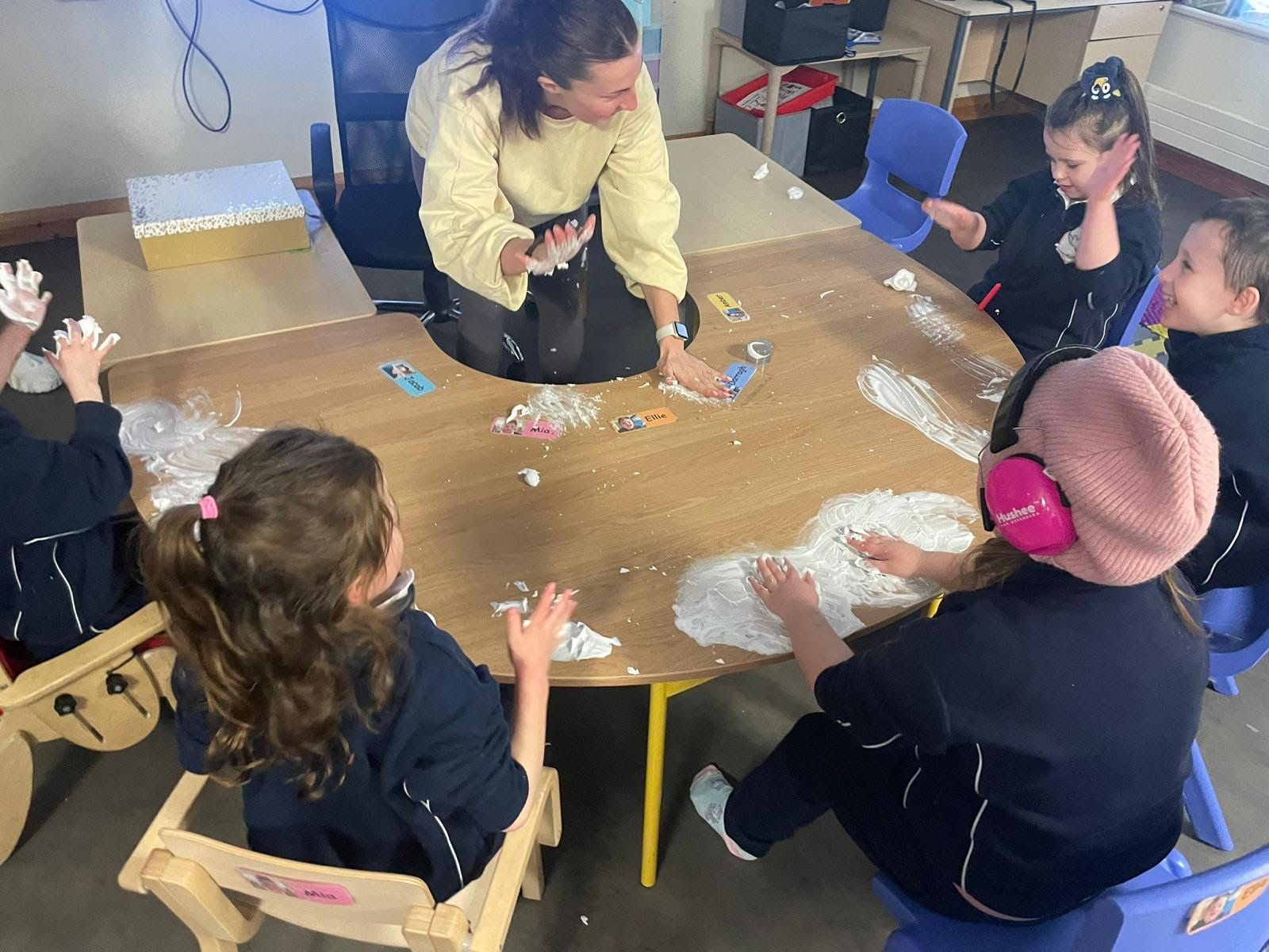 Their Friday Class Shop has been a fantastic success, helping pupils practise waiting, requesting, turn-taking and communication — even welcoming visits from Willow and Hazel. This term also included muddy puddles, space exploration, Valentine’s art and lots of messy music play!